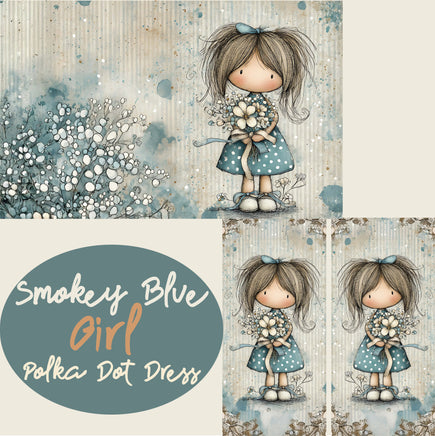Notebook Cover-7.5x9.75 in Smokey Blue Girl Polka Dot Dress