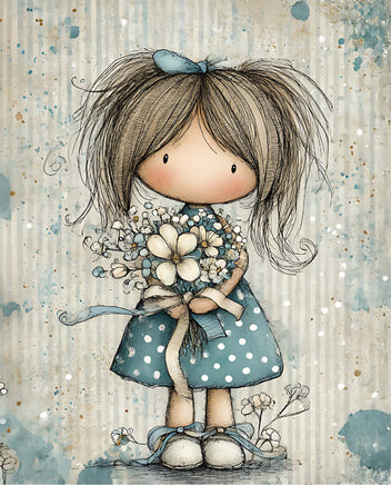 Printed Vinyl Panel 8.5x10.5 Smokey Blue Girl Polka Dot Dress