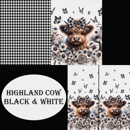 Notebook Cover-7.5x9.75 in Highland Cow Black & White
