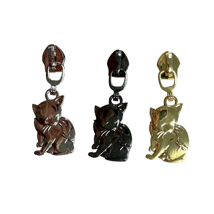 Cat Zipper Pull – Size 5 (Silver, Gunmetal, & Gold)