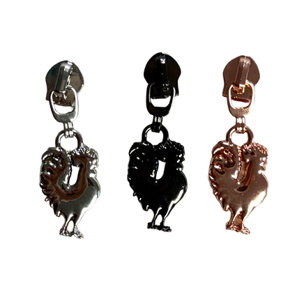 Chicken Zipper Pull – Size 5 (Silver, Gunmetal & Rose Gold)