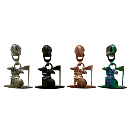 Add a sporty, stylish touch to your projects with our Golf Bag Zipper Pull, designed to fit all standard #5 zipper tape. Featuring a detailed golf bag design, this pull is perfect for bags, pouches, apparel, and golf- or sports-themed creations.