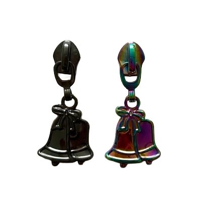 Jingle Bells Zipper Pull β Size 5 (Gunmetal & Rainbow)