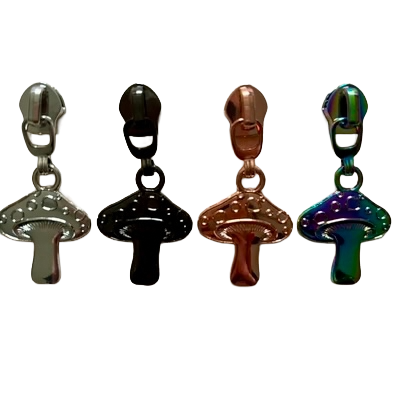 Mushroom Zipper Pull – Size 5 (Silver, Gunmetal, Rose Gold & Rainbow)