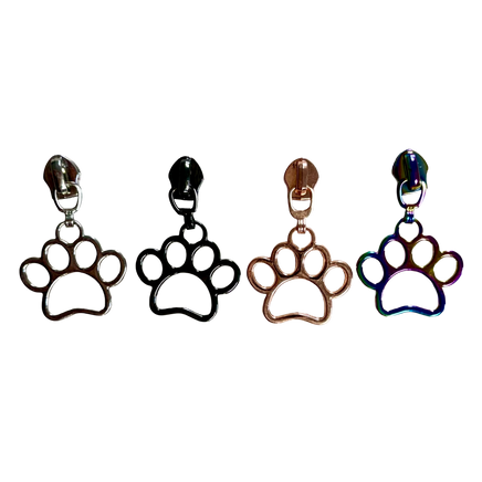 Paw Print Zipper Pull – Size 5 (Silver, Gunmetal, Rose Gold & Rainbow)