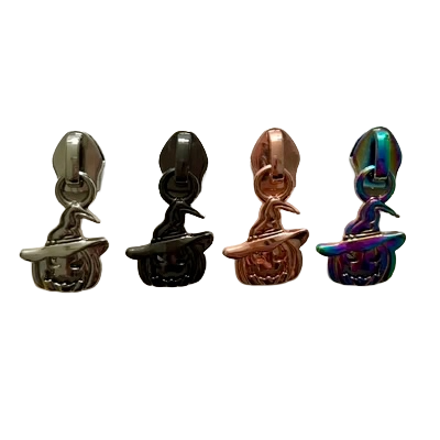 Pumpkin Witch Hat Zipper Pull – Size 5 (Silver, Gunmetal, Rose Gold & Rainbow)