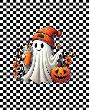 Printed Vinyl Panel 8.5x10.5 Halloween Ghost on Black and White Checks