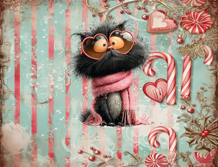 Tote Panel Valentine Black Cat Heart Shaped Glasses
